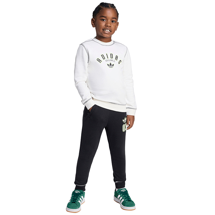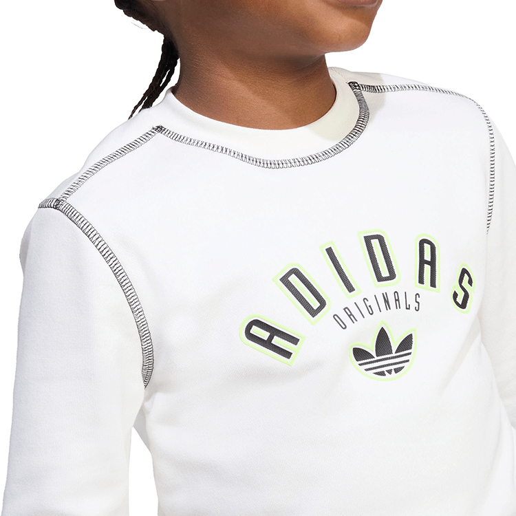 \nCostumul sport pentru copii Adidas CREW SET este potrivit pentru scoala, plimbari, calatorii, joaca in aer liber si relaxare acasa. Culoarea alba subliniaza un stil curat si actual, iar apartenenta la categoria Originals face modelul si mai atractiv pentru cei care apreciaza estetica recognoscibila a brandului Adidas. Daca esti in cautarea unui costum sport Adidas pentru copii care imbina confortul, versatilitatea si un aspect modern, acest model merita ales.