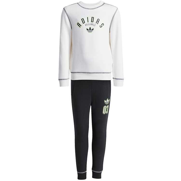 Subcategorie Originals Modelul JX5261 Compozitie Bumbac 70% Polietilen tereftalat 30% Culoare Alb Virsta Copii Marimea 110 Gender Unisex Codul modelului CREW SET Directia Imbracaminte Categoria Sport Lifestyle Denumire model CREW SET Tara de origine Indonezia Grupa Costum Tipul Costum Sportiv Marca comerciala Adidas -