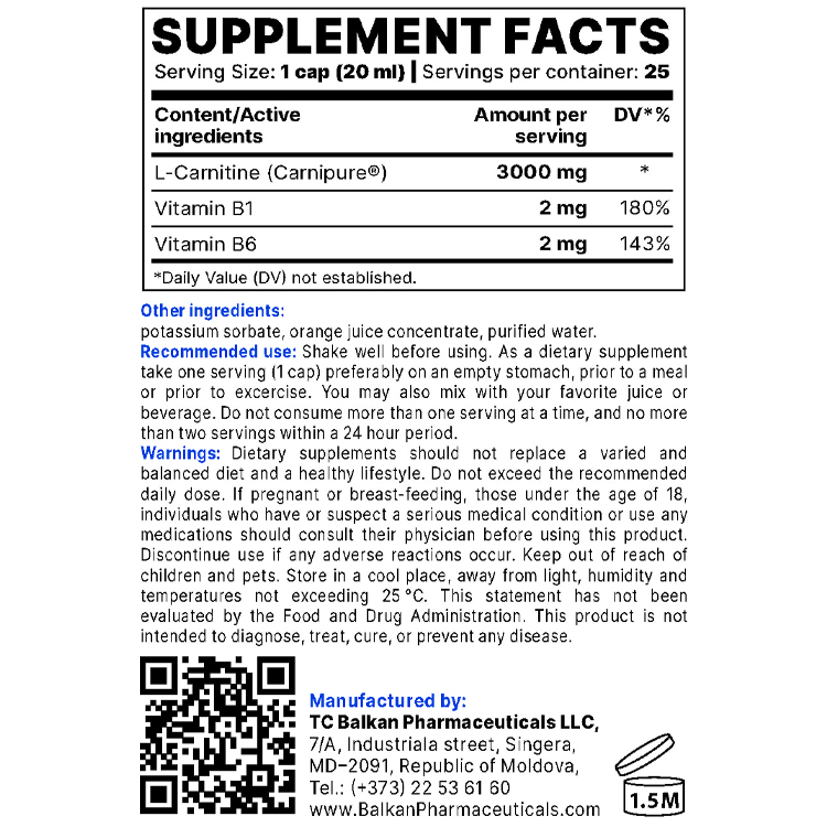 - Ацетил-Л-Карнитин Balkan Pharmaceuticals L-CARNITINE BP liquid 500 ml