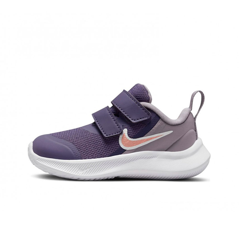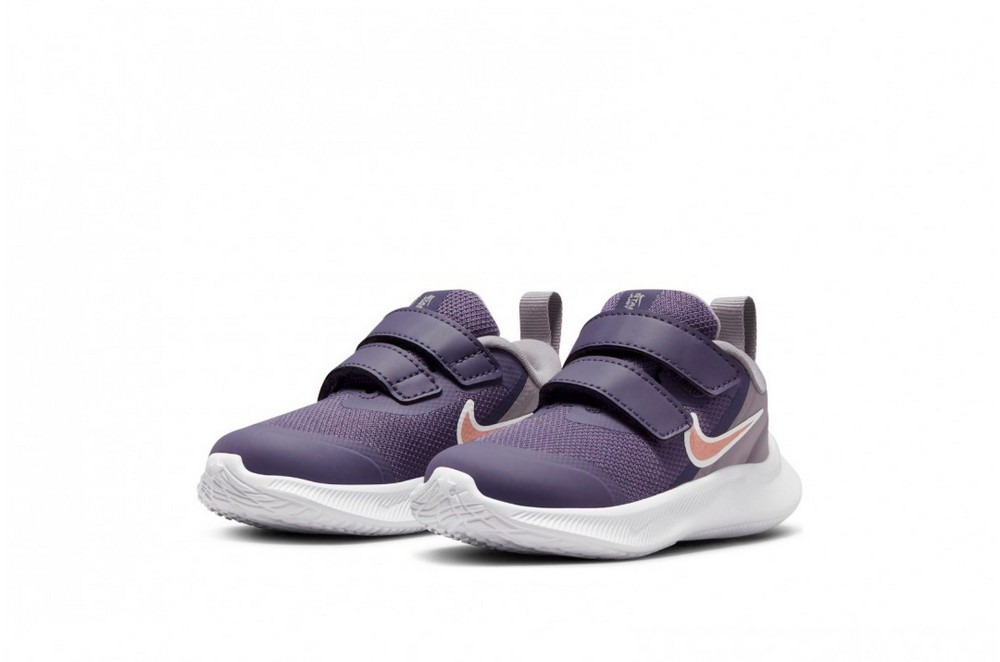 Модель DA2778-501 Состав 77% синтетика, 23% текстиль Цвет Фиолетовый Возраст Дети Размер европейский 27 Пол Мужской Направление Обувь Категория Спорт Бег Название модели STAR RUNNER 3 (TDV) Страна изготовителя Вьетнам Группа Кроссовки Бренд Nike -