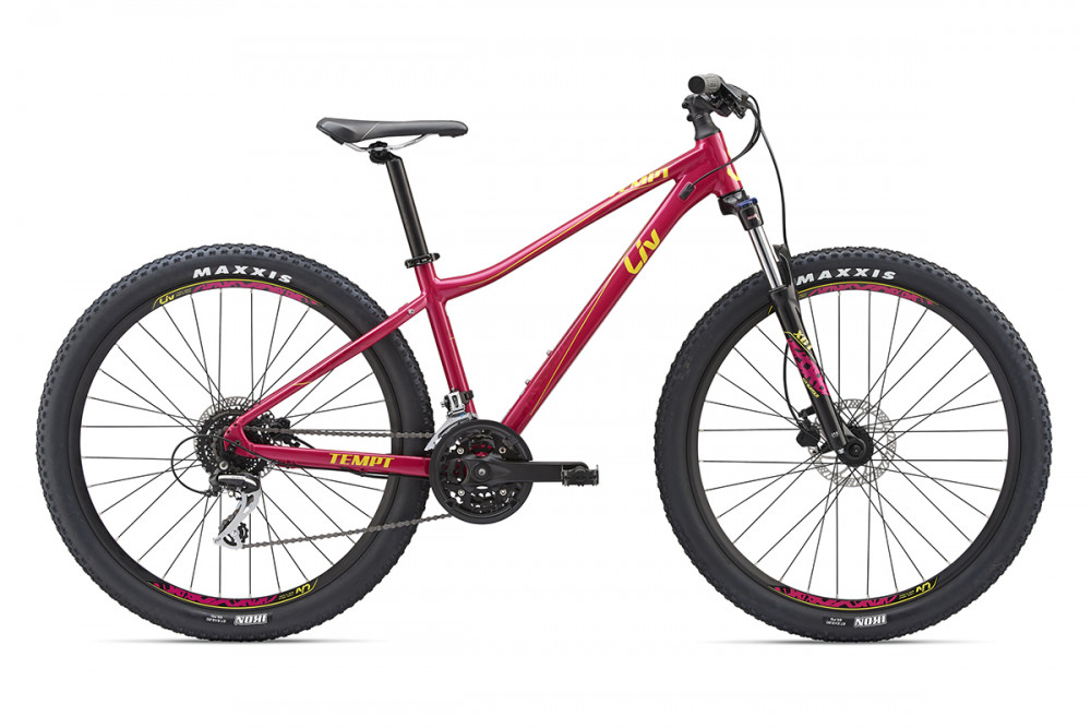 Размер : S, M\r\nЦвет : Magenta\r\nРама : ALUXX-Grade Aluminum\r\nВилка : SR Suntour XCT HLO 27.5, 100mm travel, lockout, with preload adjuster\r\nРуль : Giant Connect Trail, 25.4mm\r\nВынос руля : Giant Sport, 6-degree, 25.4mm-1/1.8\r\nПодседельный штырь : Giant Sport, 30.9\r\nСедло : Liv Connect (forward)\r\nМанетки (шифтеры) : Shimano Altus, 3x8 Speed\r\nПередний переключатель : Shimano Altus\r\nЗадний переключатель : Shimano Acera\r\nТормоза : Tektro M275[F] 160 [R] 160\r\nКассета : Shimano CS-HG31, 11-34, 8 Speed\r\nЦепь : KMC Z72\r\nОбод : Giant GX03V 27.5 6061 aluminum, double wall, 21mm inner width\r\nТрансмиссия : ProWheel Burner-301P, 22/32/42\r\nСпицы : Stainless Steel, 14g\r\nПокрышки : Maxxis Ikon 27.5x2.2, 60 tpi wire\r\nВес : 14.8 kg\r\nКоличество скоростей : 3x8 speed\r\n.\r\n
