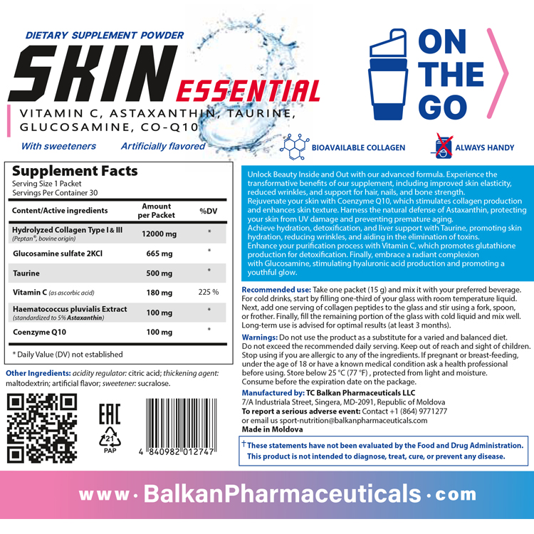 - Витамины Balkan Pharmaceuticals SKIN ESSENTIAL powder N30 15 gr