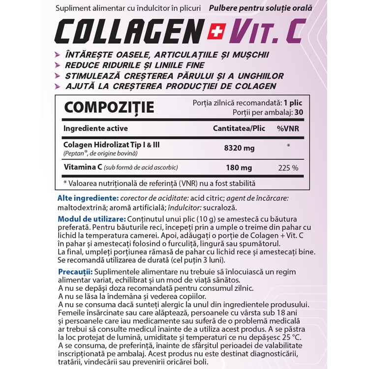 Subcategorie Alimentara Sportiva Directia Echipament Categoria Sport Fitness Denumire model COLLAGEN + VIT. C powder N30 10 gr Tara de origine Moldova Grupa Vitamine Tipul Vitamine Marca comerciala Balkan Pharmaceuticals Model BF1273 -